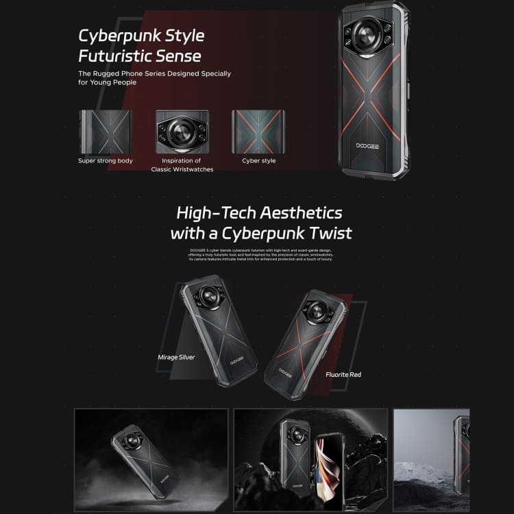 DOOGEE S Cyber، 8 جيجابايت + 256 جيجابايت، 6.56 بوصة، أندرويد 14، Spreadtrum T606 ثماني النواة، الشبكة: 4G، OTG، NFC (أسود وأحمر)
