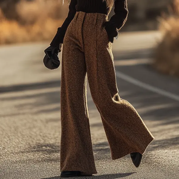 بنطلون نسائي من الصوف ذو الساق الواسعة بتصميم عتيق