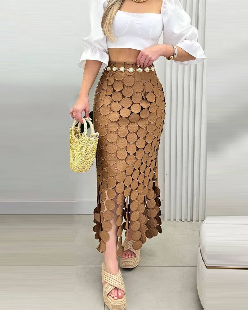 تنورة طويلة ضيقة بتصميم بوهو مجوفة وقصّة ضيقة