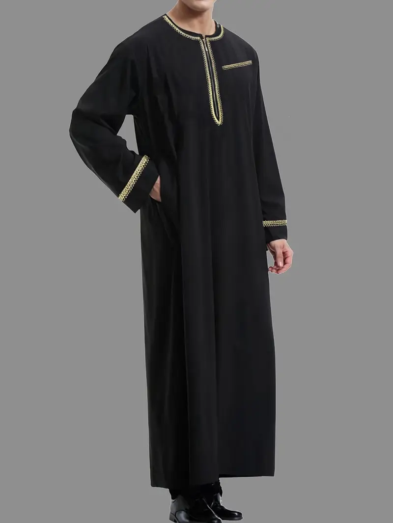 رداء طويل للرجال مع حواف ذهبية، رداء طويل الأكمام من الشرق الأوسط،