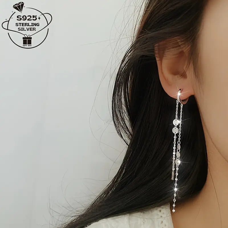زوج واحد من أقراط النساء الفاخرة الطويلة بشراشيب من فضة 925. مناسبة للارتداء اليومي، الحفلات، المسرح، والاحتفالات. هدية مثالية للعطلات