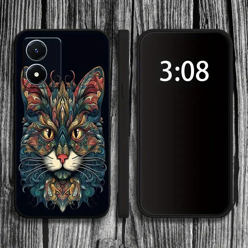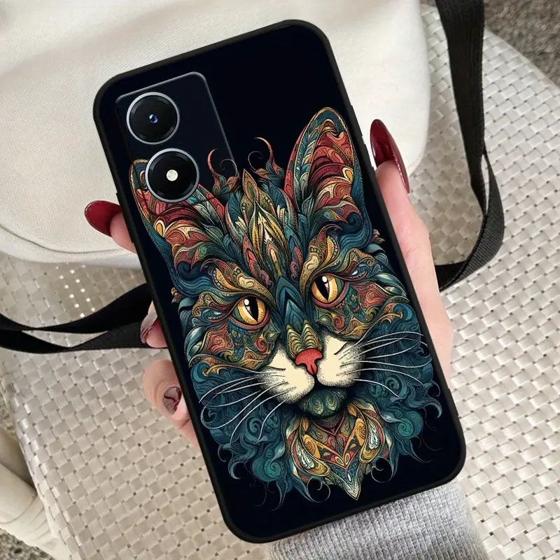 طاء هاتف ناعم من مادة TPU غير لامع برأس قطة مشرق متوافق مع طرازات فيفو S9 و X30 و X50 و Y70S و Y51S و Y70T و Y50T و Y73S و S7E و S7 و V20 و S7T و V21 و V21E و S10 و Y71T و X70 و Y21T و Y21S و Y33S و Y33T و Y32 و Y21G و Y21A و T1X و S10E و V23E و Y75 و Y76S و Y74S و V23 و S12 و X80 و S15 و V25 و Y02S و Y55S و Y72T و U1 Pro