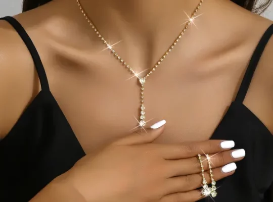 هدية عيد الأم لصديقتك، طقم قلادة وأقراط وسوار عصري مرصع بالألماس قطرة الماء وسلسلة