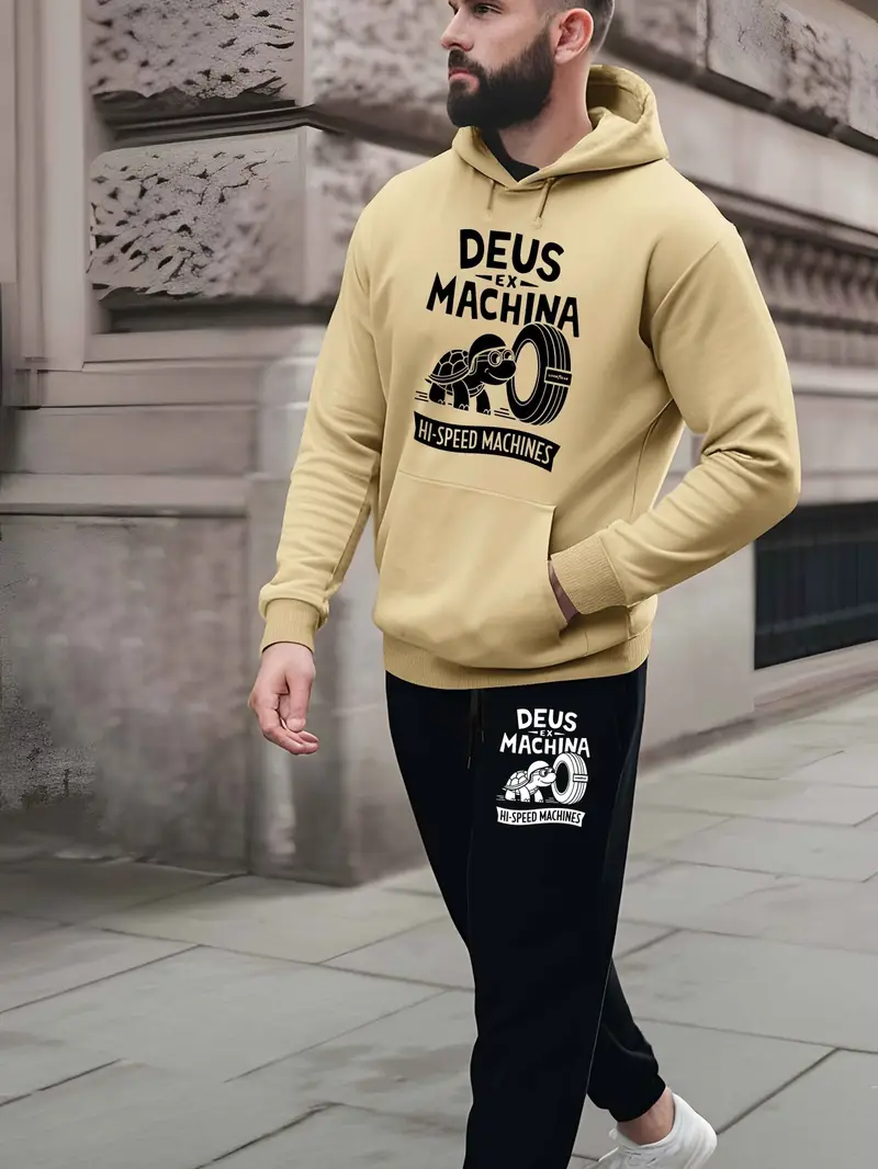 مجموعة هوديي مطبوعة من Deus Ex Machina للرجال، سويت شيرت وبنطلون هودي من البوليستر العادي، أكمام طويلة، مقاس عادي، نسيج محبوك، تمديد خفيف، مجموعة خريف/شتاء