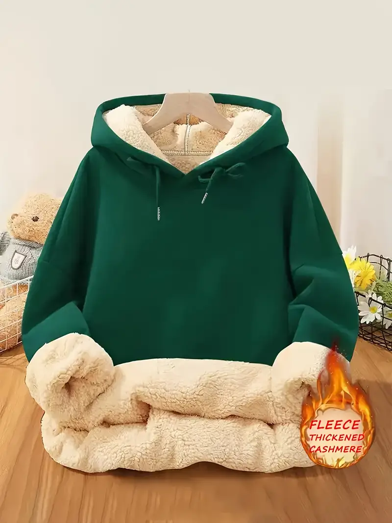 هودي نسائي كاجوال مبطن بالفليس، 100% بوليستر محبوك، لون سادة، سويتر سميك بغطاء للرأس، للخريف/الشتاء، هودي يومي|سويتر بغطاء للرأس|هودي بملمس ناعم، سويتر هودي