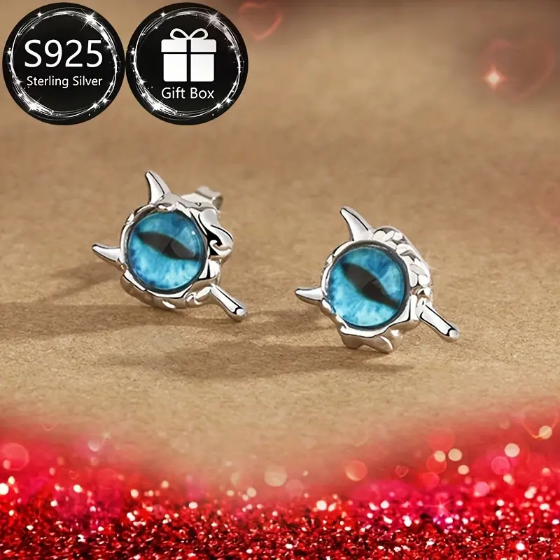 2 قطع أقراط عين الشيطان من فضة S925 للرجال والنساء، أقراط عصرية ومتعددة الاستخدامات بعيون زرقاء. مناسبة للارتداء اليومي، الحفلات، التجمعات والسفر، وهدية عيد الحب للأصدقاء والعائلة