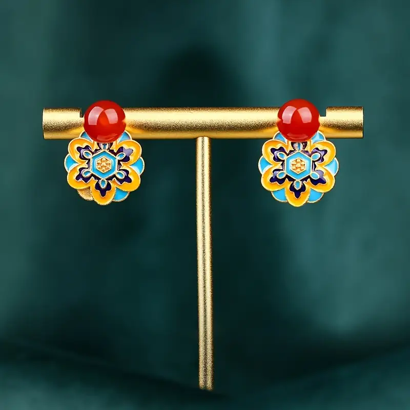 أقراط هندسية على شكل قلب باللون الأحمر بأسلوب إسلامي عتيق، من نحاس مطلي بالذهب عيار 24 قيراط مع حجر اليشم الصناعي، مجوهرات يومية أنيقة وهدايا المناسبات