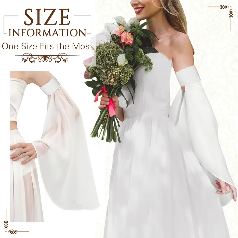 أكمام طويلة أنيقة من التول للنساء مع قفازات شيفون قابلة للفصل
