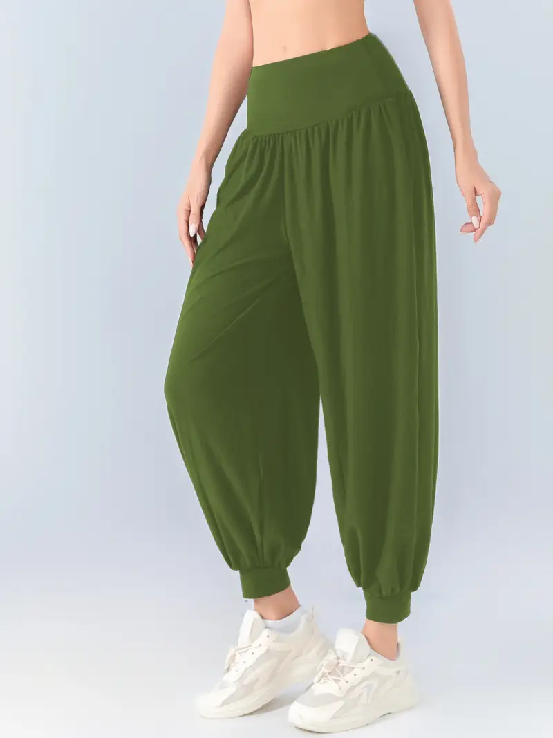 بناطيل جوجرز كاجوال بخصر عالٍ للنساء - مقاس فضفاض، بنطلون يوغا بأرجل عريضة مع أساور مطاطية، خليط بوليستر قابل للتنفس