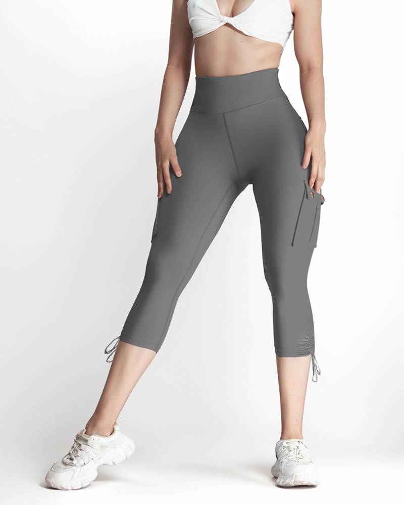بنطال رياضي كاجوال ضيق بقصّة “Capri” بخصر عالٍ وتصميم جيب ورباط للتمرين