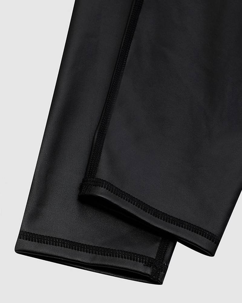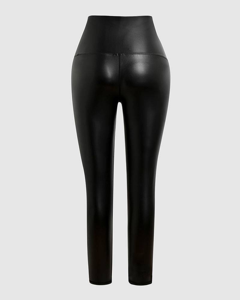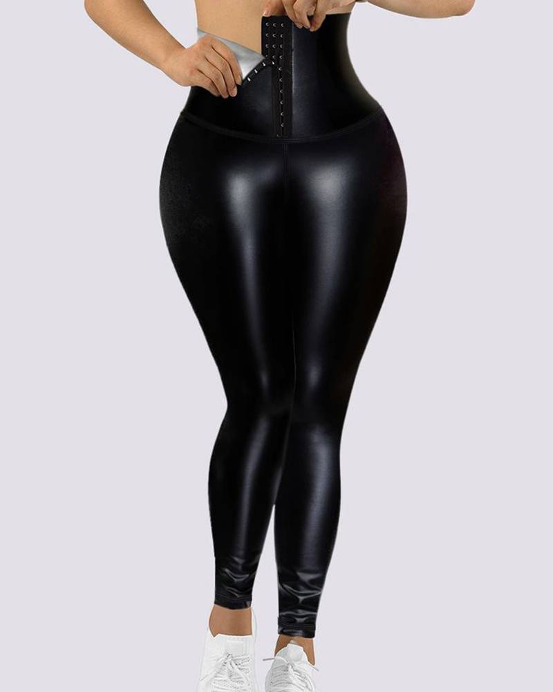 بنطال ساونا لامع من الجلد الصناعي مع خطاف أمامي