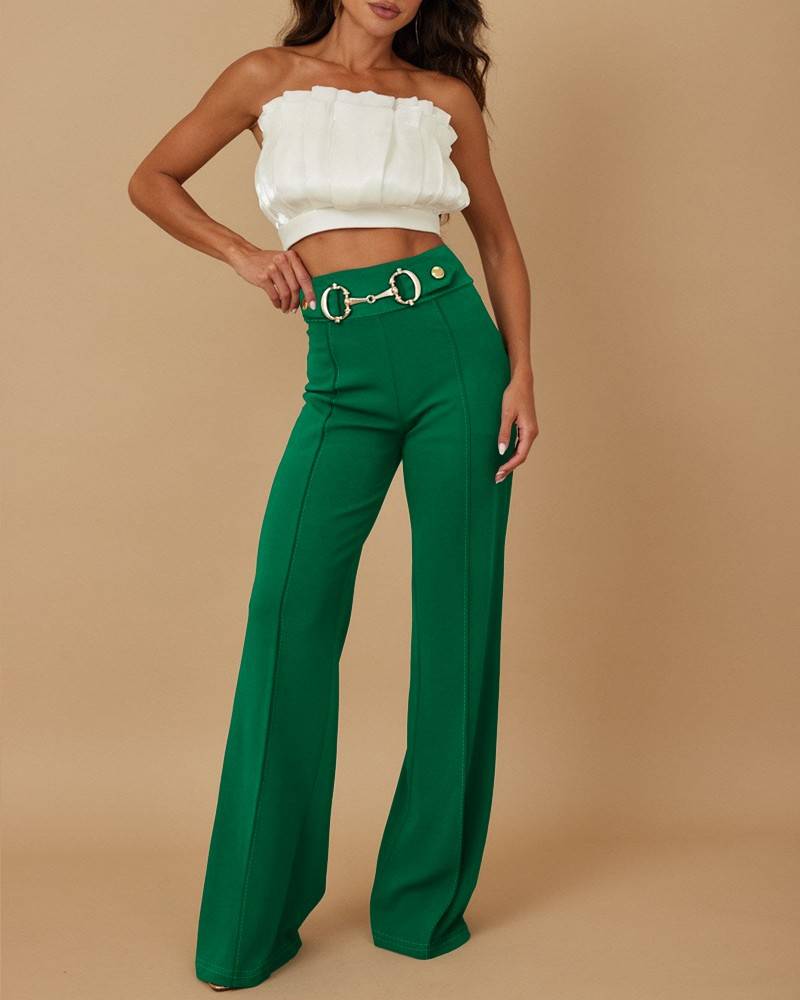 بنطال عمل كاجوال بساق مستقيمة وخصر مرتفع ومزخرف بأزرار معدنية