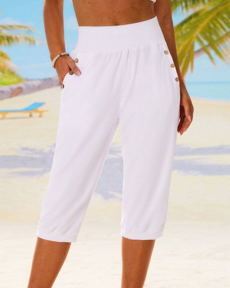 بنطال كابري كاجوال بتصميم جيوب وأزرار