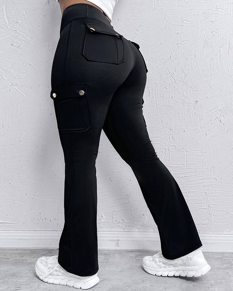 بنطال ليجنز لرفع المؤخرة وخصر مرتفع للتحكم في البطن وواسع الساق مع جيوب بغطاء