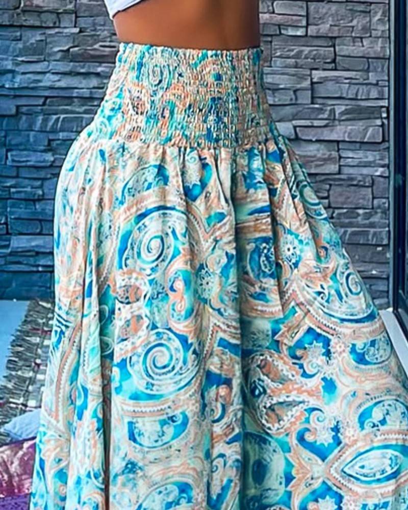 بنطال واسع الساق بخصر مرتفع وطبعة بيزلي