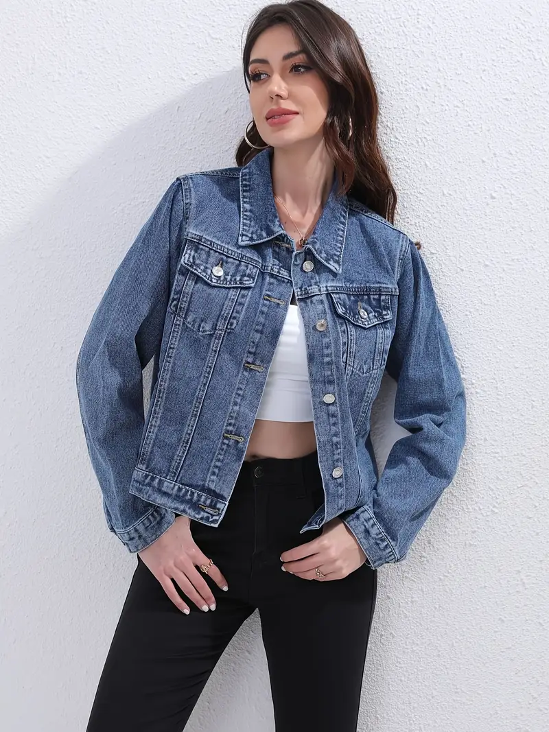 جاكيت دينم كاجوال للنساء بتطريز زهور، أنيق وشخصي بأسلوب قصير