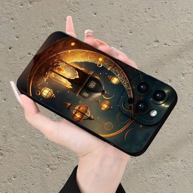 حافظة هاتف فريدة بتصميم قمر هلال مستوحى من رمضان، متوافقة مع أجهزة آيفون 16، 15، 14، 13، 12، 11، XS، XR، X، 7، 8 Plus، Pro Max، وMini، مثالية لتقديمها كهدية خلال مهرجان رمضان
