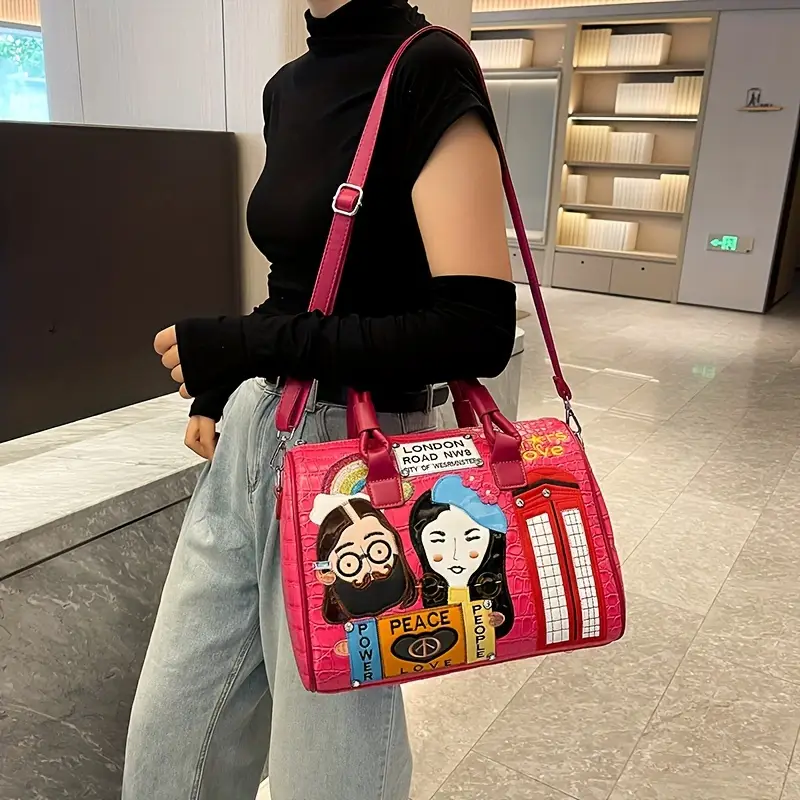 حقيبة كروسبودي نسائية مطرزة بـ [سحر لعب] برسومات لندن الحية والحب والسلام
