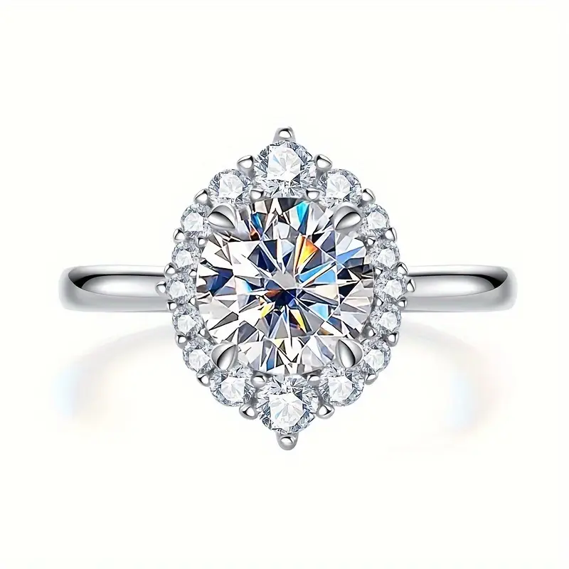 خاتم فاخر للنساء من فضة 925 بحجر مويسانيت دائري 2 قيراط مقاس 8.0 مم إجمالي 3.75 جرام، خاتم أبدي أنيق وهدية مبتكرة للأصدقاء والأصدقاء المقربين