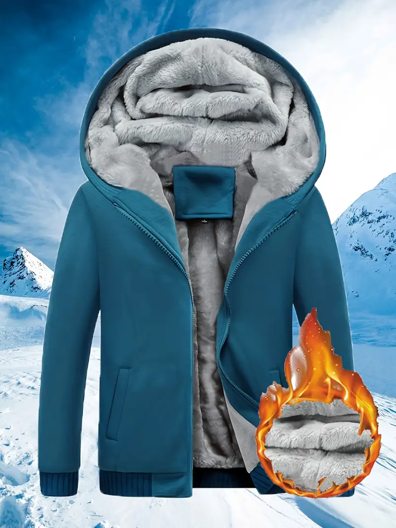 سترة شتوية دافئة بغطاء للرأس من الصوف بسحاب، قلنسوة كاجوال بنمط كتلة الألوان