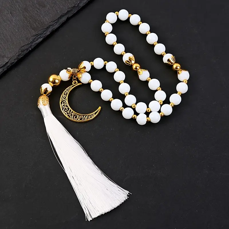 سلسلة تسبيح إسلامية بتصميم أنيق مع شراشيب وتعليقة هلال، معصم نسائي عصري، مصنوعة من الراتنج، بأسلوب عربي، مناسبة لجميع الفصول والإرتداء اليومي، تزيين رمضان