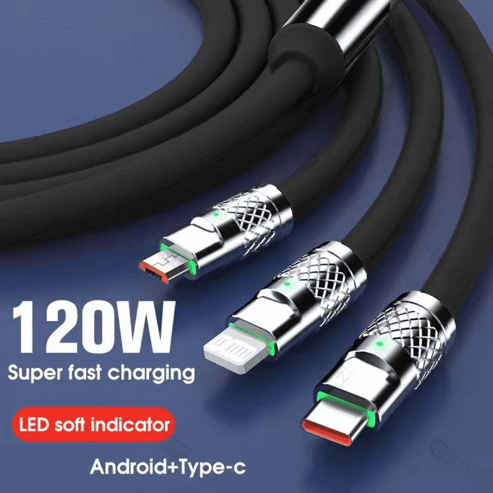 سلك شحن سريع لهواتف iPhone، هواوي، Poco 6A، شاحن USB من النوع C، كابل بيانات، منفذ متعدد، سلك شحن USB صغير، 3 في 1، 120