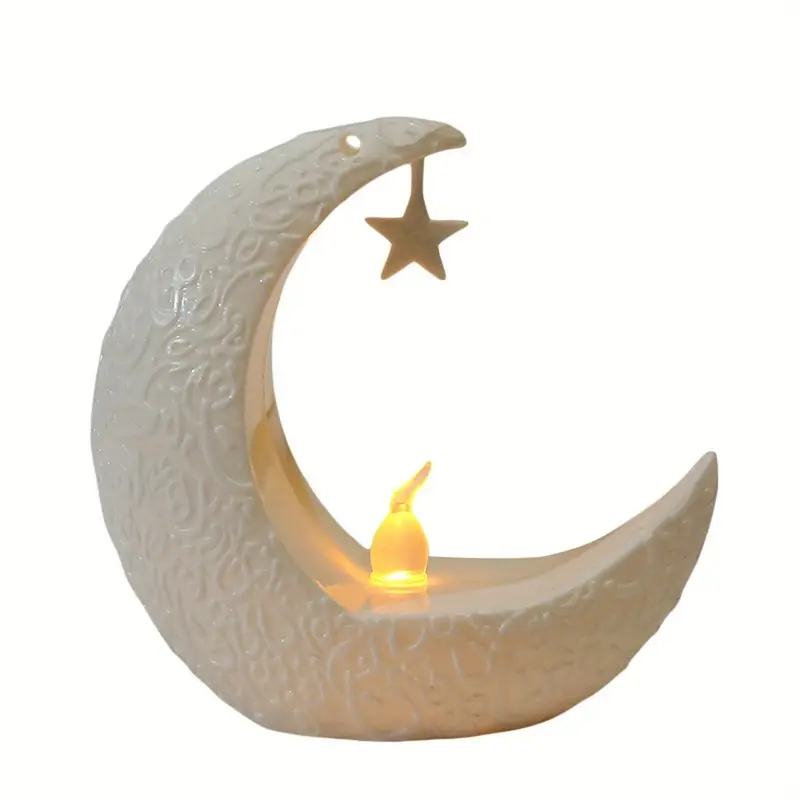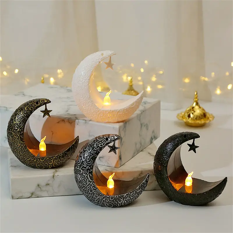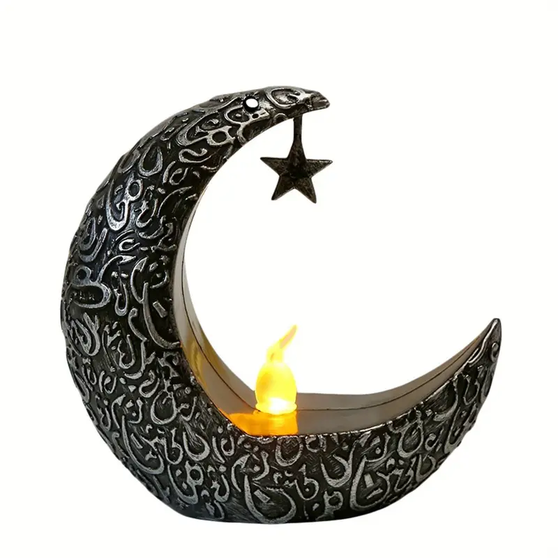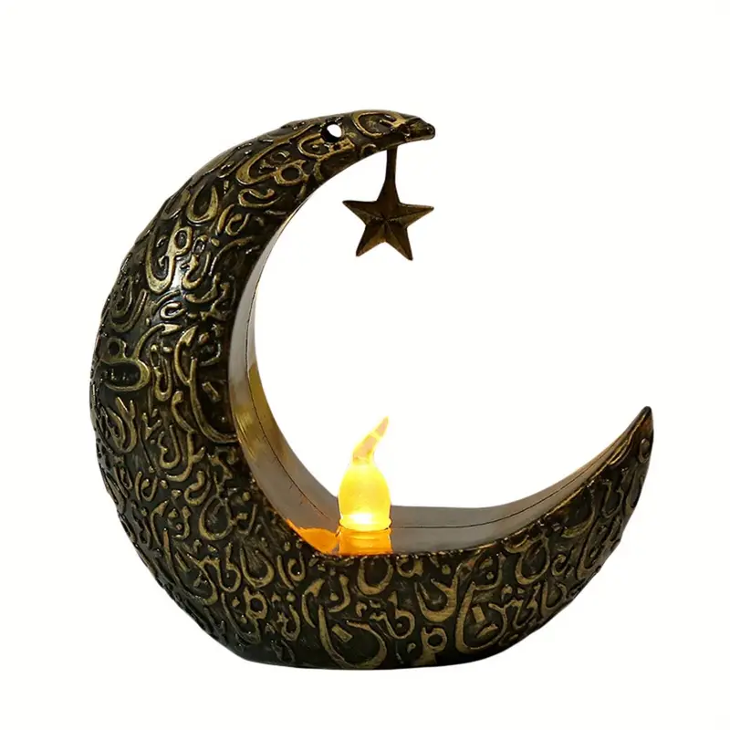 شمعة LED على شكل هلال قديم مع نجمةمعلقة – ضوءليليزخرفي للطاولات للاحتفالات مثل رمضان،عيدالميلاد،عيدالأضحى،عيدالشكر،وزينةالحفلات المنزلية – متوفربالألوان الأسود/الأبيض/الذهبي ا لقديم/الفضي ا لقديم