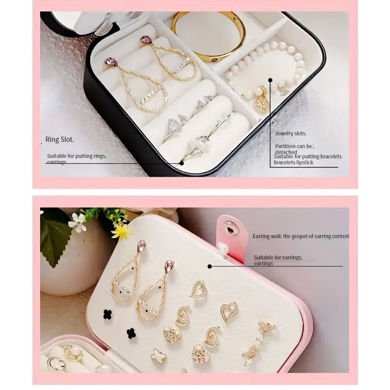 صندوق تخزين المجوهرات الفاخر من الجلد الصناعي ذو الطبقتين – قابل للتحلل البيولوجي، منظم مكتبي محمول مع إغلاق بالضغط للقلائد، مثالي لعيد الميلاد/عيد الأم/الكارنفال