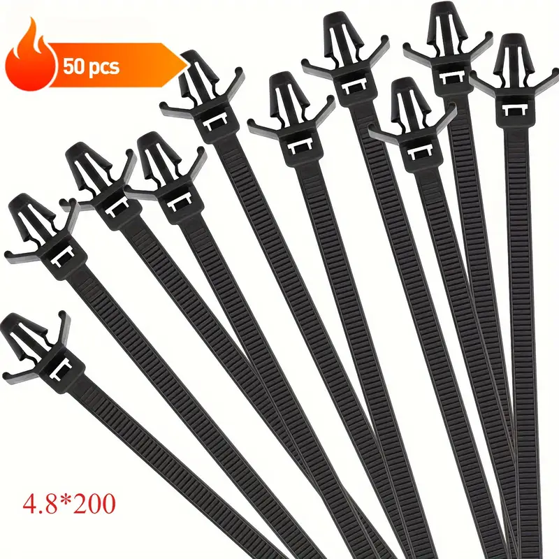 عبوة من 50 رباط نايلون، مادة PA66، منظّم كابلات ذاتي القفل للاستخدام في البناء المنزلي، والإلكترونيات، وصناعات السيارات
