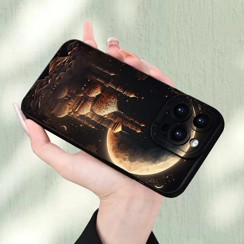 غلاف هاتف واقي ناعم بتصميم قمر رمضان أنيق وفريد لهواتف آيفون 7/8/X/XS/XR/11/12/13/14/15/16 بلس برو ماكس ميني، مناسب للهدايا في رمضان