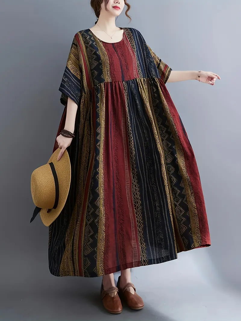 فستان فضفاض قصير الأكمام باللون الأزرق للنساء الحوامل بمقاسات كبيرة