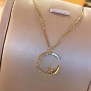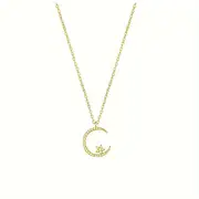 قلادة أنيقة ورائعة من الزركونيا اللامعة على شكل نجمة وقمر، مناسبة لشهر رمضان المبارك، بتصميم بسيط وأنيق، يمكن ارتداؤها يوميًا مع أي ملابس.