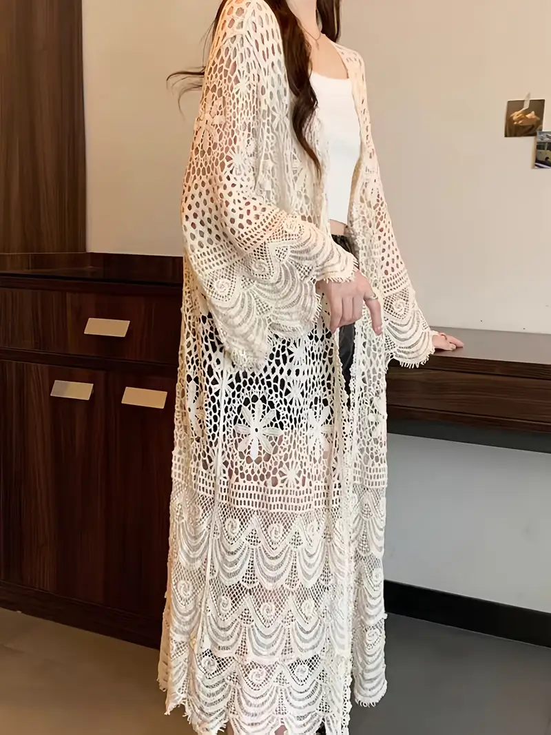 كارديجان فضفاض كاجوال للنساء، موضة طوال العام، بوليستر محبوك، نمط مجوف، لون صلب، تصميم بدون ياقة، ملابس خارجية أنيقة ومتعددة الاستخدامات