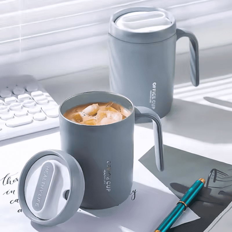 1 رمادية بطبقة من البولي بروبيلين الإبداعية كوب شرب محمول مكتب سعة كبيرة مغطى كوب حليب قهوة هدية للمطبخ والسفر المنزلي
