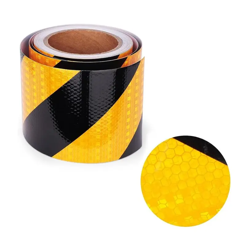 لفة واحدة من شريط الأمان العاكس عالي الوضوح، 10 سم × 25 م، شريط لاصق باللونين الأسود والأصفر لتحديد الطرق، محطات الوقود، مواقف السيارات، والمخازن – مادة متينة