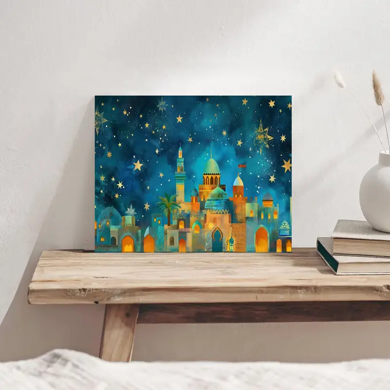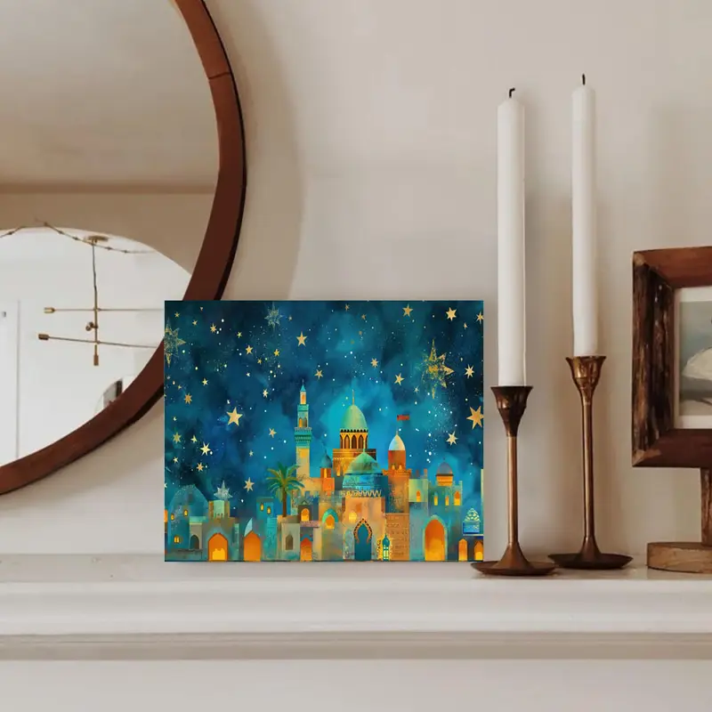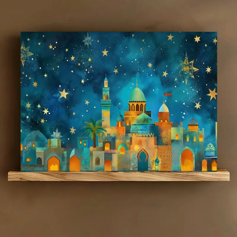 لوحة قماشية إطار خشبي 2D 1 قطعة، فنية عيد مبارك، فنية جدارية رمضان، لغرفة النوم، غرفة المعيشة، الفصل الدراسي، المكتب، ديكور المعرض، 29.97×39.88 سم