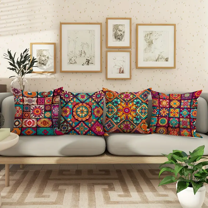 مجموعة من 4 قطع من أغطية الوسائد ذات النمط البوهيمي العصري والأنيق – أغطية وسائد زخرفية مناسبة للأرائك وغرف المعيشة والأرائك والهواء الطلق ، أغطية وسائد زخرفية ، 45.72 * 45.72 سم (باستثناء وسادة الأساسية