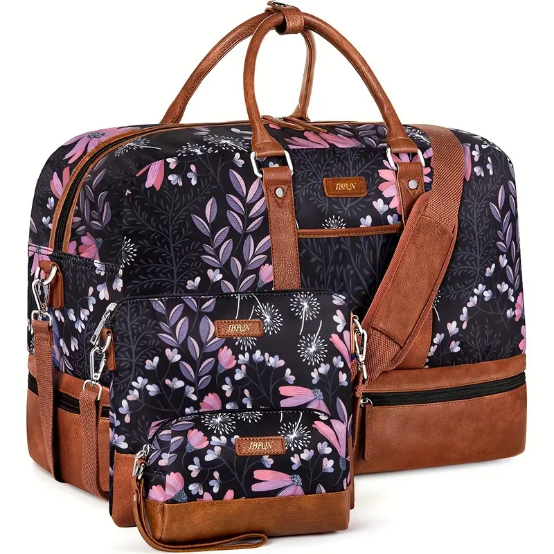 مجموعة نهاية الأسبوع الأنيقة للنساء مكونة من 3 قطع – حقائب سفر بوليستر مع حجرة للأحذية، حقيبة حمل ليلية من قوانغتشو – حزام قابل للتعديل وغطاء للعربة