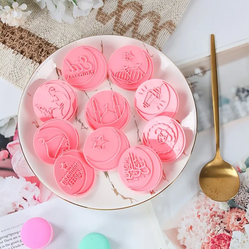 مجموعة 10 قطع من قواطع الكوكيز الإسلامية – عيد مبارك، رمضان كريم، قصر، القمر، فانوس، نجوم – ختمات الخبز الإسلامية للديكور المنزلي – لا حاجة للطاقة – مثالية للاحتفالات بعيد الفطر