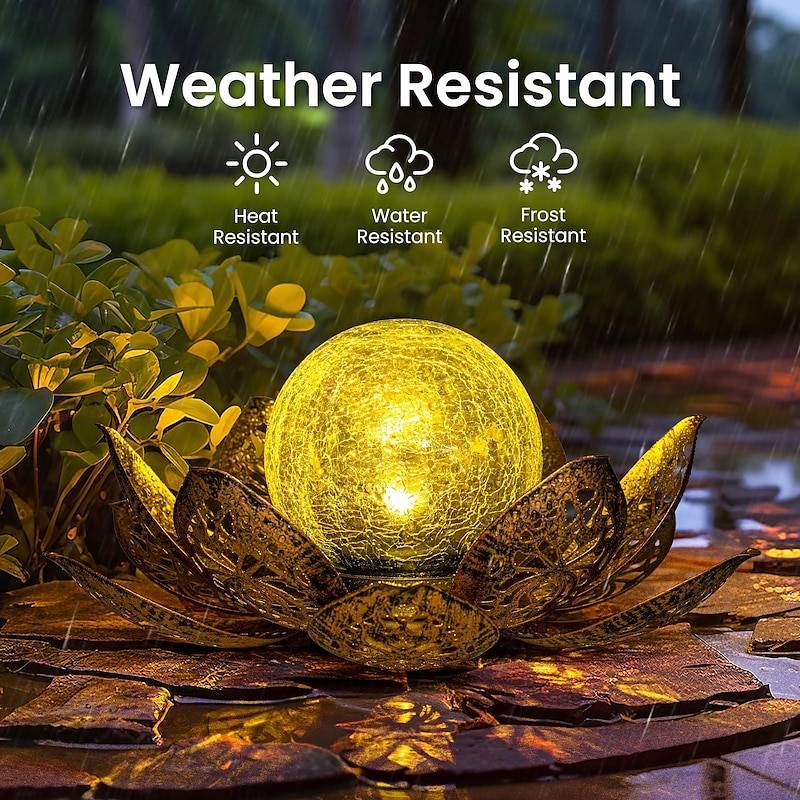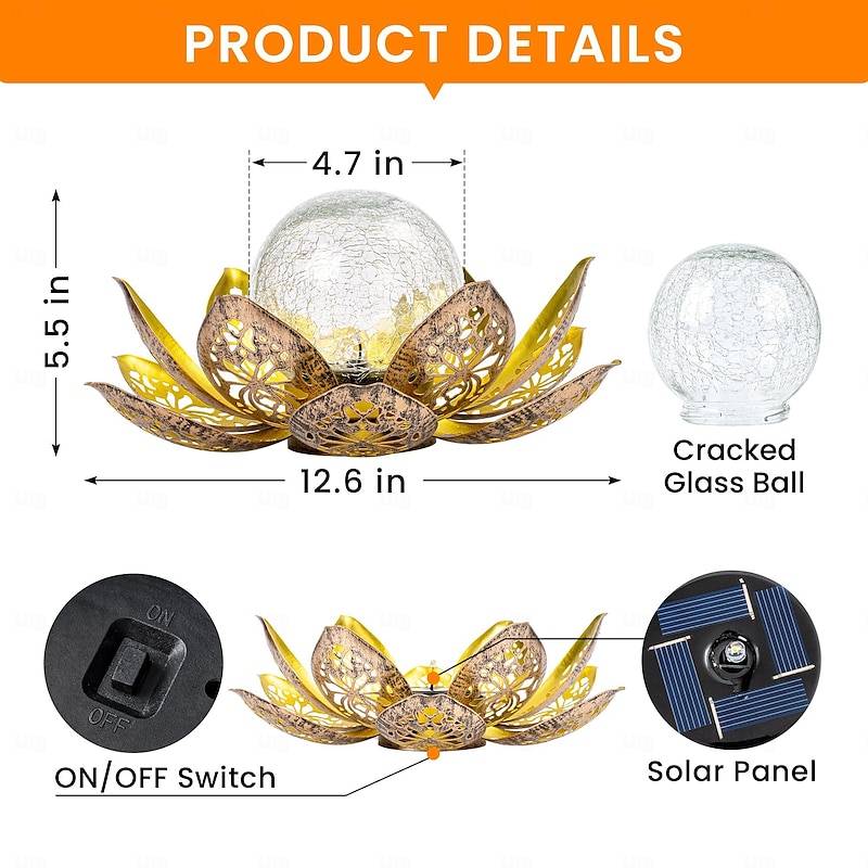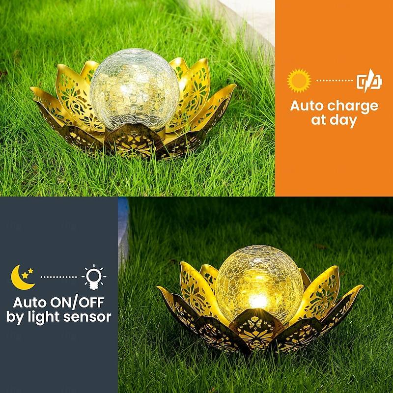 ضواء شمسية لتزيين الحديقة الخارجية، بتلات معدنية قابلة للتعديل على شكل زهرة اللوتس، مصابيح زجاجية لتزيين الطاولة في الهواء الطلق مقاومة للماء للفناء والحديقة والمسار والبركة وهدية عيد الميلاد