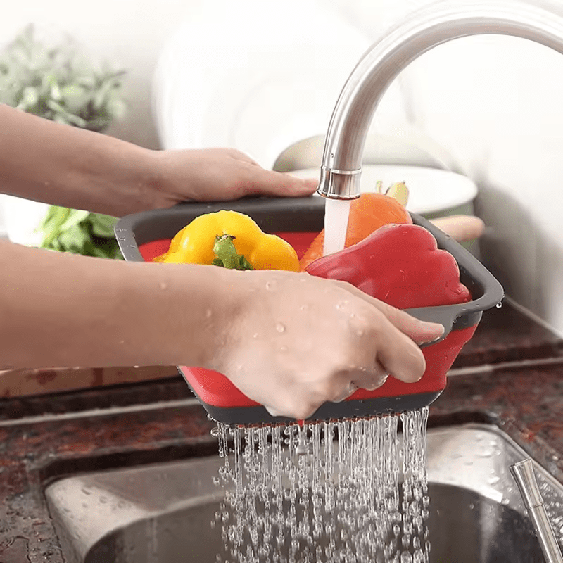 مصفاة سيليكون قابلة للطي بمقبض، غسيل فواكه وخضروات، مصفاة محمولة، قابلة للطي، أدوات المطبخ