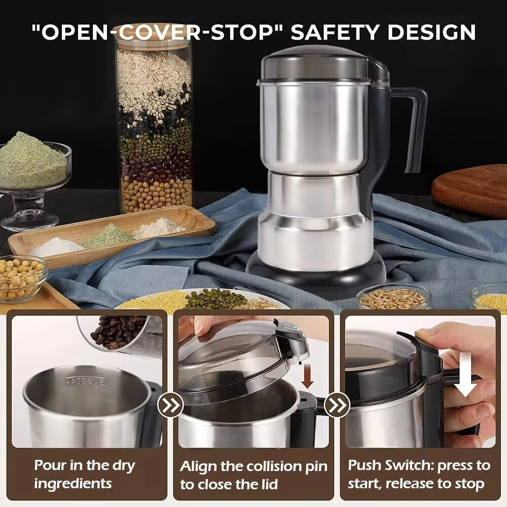 مطحنة قهوة كهربائية متعددة الوظائف بقوة 400 واط مستويات طحن قابلة للتعديل من الفولاذ المقاوم للصدأ للحبوب والتوابل والمكسرات للمطبخ المنزلي 35000 دورة في الدقيقة – الاتحاد الأوروبي قابس COD