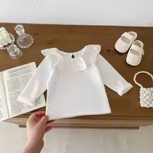 الفتيات طويلة الأكمام تي شيرت الدانتيل لوتس طوق الأميرة الاطفال مضلع قاع قميص طفل ملابس علوية من القطن