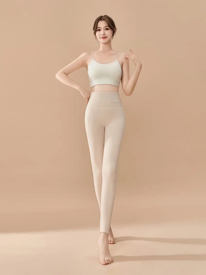ملابس نسائية ، بنطال ضيق مطاطي بخصر عالٍ غير رسمي ، بطانة من الفرو الصناعي الدافئ ، مناسب لفصل الخريف والشتاء