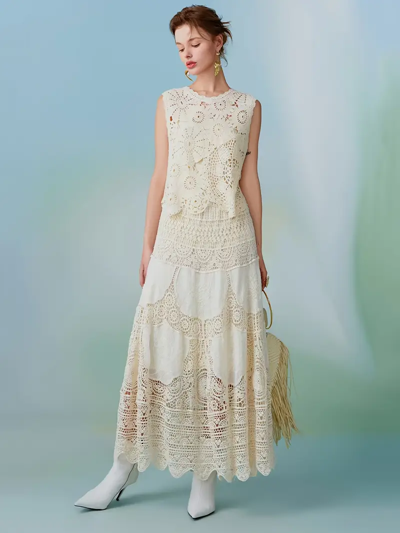تنورة نسائية أنيقة بتصميم الدانتيل على شكل حرف A – لون سادة أنيق، مثالية للربيع والصيف، بوليستر قابل للتنفس، تنظيف يدوي أو جاف فقط، كاجوال، للارتداء اليومي، ملابس عصرية