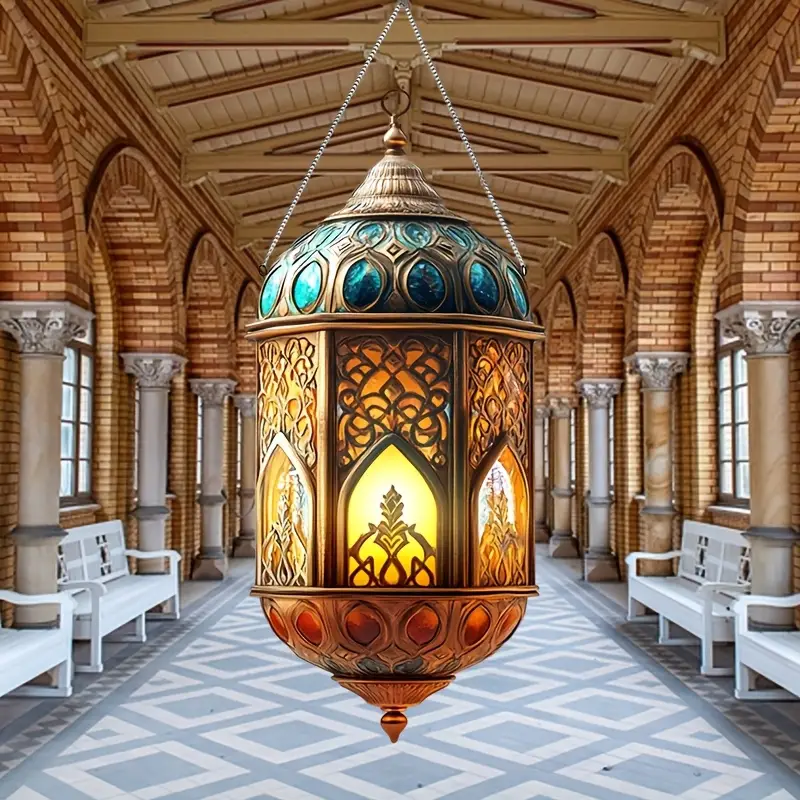 1 فانوس أكريليك أنيق لاصطياد الشمس - تأثير الزجاج الملون، لا يتطلب كهرباء، مثالي لديكور رمضان وعيد الفطر | مثالي للمنزل، الشرفة، الجدار، النافذة | بدون ريش، تصميم كلاسيكي، ديكور منزلي إسلامي