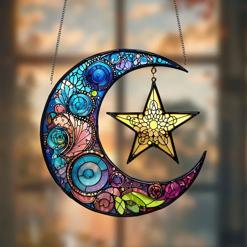 1 قطعة، ساحر القمر والنجوم صائد الشمس، أكريليك ملون بأسلوب الأكريليك (22.86 سم X 22.86 سم)، ديكور ديني، ديكور رمضان، ديكور معلق خارجي، ديكور خيالي للمنزل والمكتب والمزرعة، فناء الحديقة، هدية مثالية
