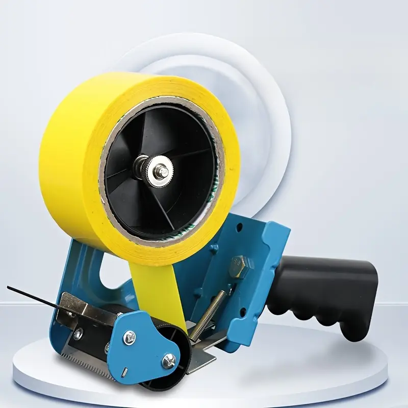 [1/2 عبوة من موزع الشريط المعدني] 1/2 عبوة من موزع الشريط المعدني المتين الكبير 6 سم/2.3 بوصة، قاطع شريط لاصق شفاف، مقبض مضاد للكهرباء الساكنة وغير قابل للانزلاق، مصنوع من سبائك معدنية، للاستخدام في المكتب والتجاري – أسود وأزرق سماوي