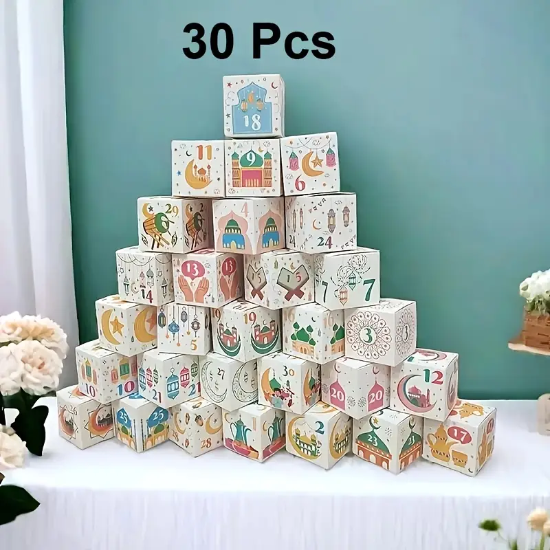 30 قطعة من تقويم رمضان القابل لإعادة الملء، صندوقات عيد مبارك فارغة من الورق للتقويم الذاتي، صندوقات هدايا رمضان بألوان مختلطة لتجهيزات الحفلات والديكورات