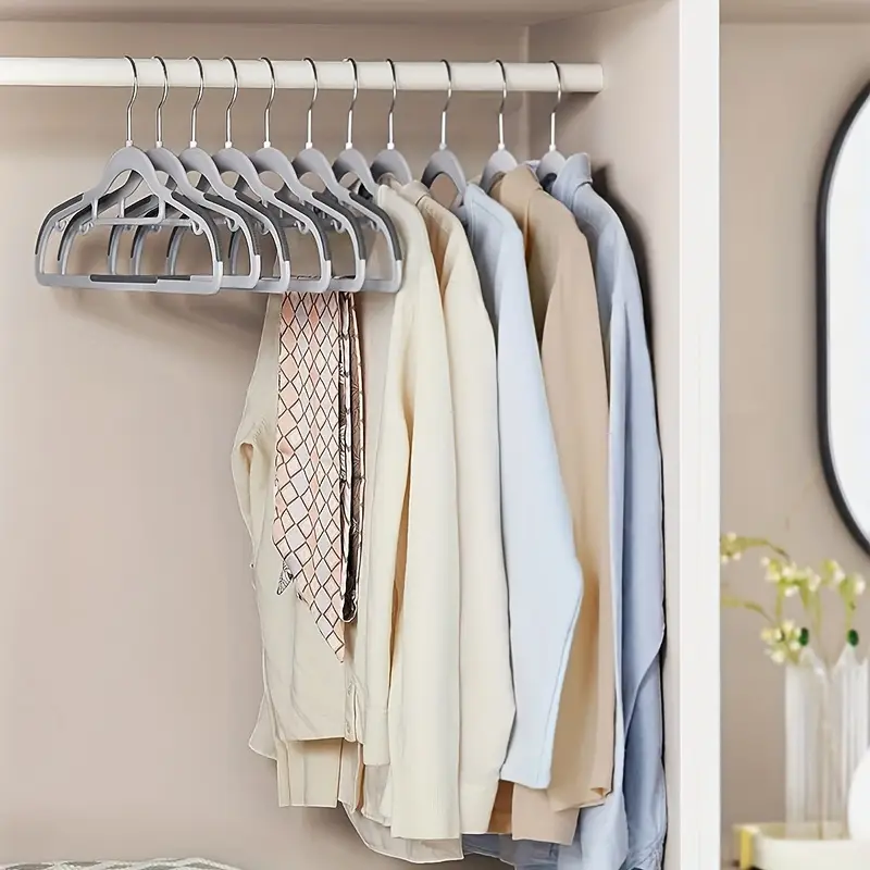 30 قطعة من شماعات الملابس الممتازة LDQ غير قابلة للانزلاق مع حماية زاوية الكتف – تصميم موفر للمساحة، مُثخن، خالٍ من العلامات للاستخدام في المكتب/الداخل/الغسيل – رمادي
